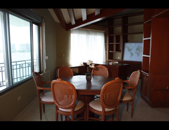 Cuenta con 3 recamaras, la principal y 2 adicionales, 2 estudios, que pueden convertirse en recamaras adicionales o Family room, sala, comedor, cocina, bar, terraza y bodega